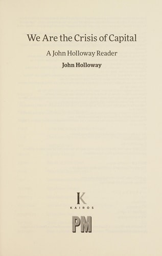 We are the Crisis of Capital collects articles and excerpts written by radical academic, theorist, and activist John Holloway over a period of forty years. Different times, different places, and the same anguish persist throughout our societies. This collection asks, "Is there a way out?" How do we break capital, a form of social organisation that dehumanises us and threatens to annihilate us completely? How do we create a world based on the mutual recognition of human dignity? Holloway's work answers loudly, "By screaming NO!" By thinking from out own anger and creativity. By trying to recover the "we" buried under the categories of capitalist thought. By opening those categories and discovering the antagonism they conceal and by discovering that behind the concepts of money, state, capital, crisis, and so on, there moves our resistance and rebellion. An approach sometimes referred to as Open Marxism, it is an attempt to rethink Marxism as daily struggle. The articles move forward, influenced by the German state derivation debates of the 1970s, by the CSE debates in Britain, and the group around the Edingurgh journal Common Sense, and then moving on to Mexico and the wonderful stimulus of the Zapatista uprising, and now the continuing whirl of discussion with colleagues and students in the Posgrado de Sociologâia of the Benemâerita Universidad Autâonoma de Puebla--back cover.